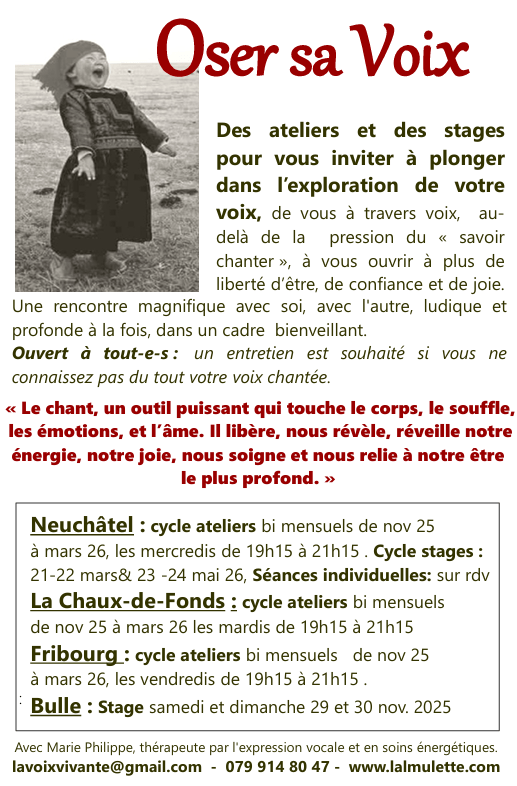 agenda de la voix vivante* m m ->en savoir plus m Les Séances individuelles : -< en savoir plus… -< en savoir plus… -< en savoir plus… m Page d’accueil de la Voix Vivante-Marie Philippe Bienvenue ! Marie Philippe – Lavoixvivante@gmail.com – 0799148047 – http://www.lalmulette.com – Neuchâtel Partager : Partager sur X(ouvre dans une nouvelle fenêtre) X Partager sur Facebook(ouvre dans une nouvelle fenêtre) Facebook J’aime chargement…